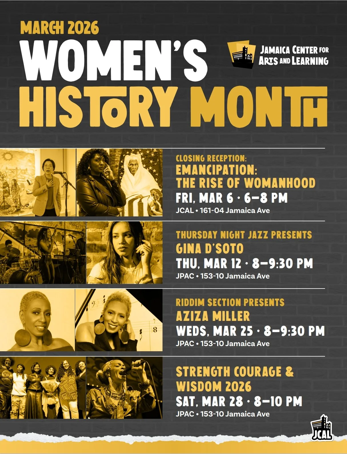 We're celebrating Women's History Month with a full lineup of performances and exhibitions at JCAL! This Friday, join us for the closing reception of Emancipation: The Rise of Womanhood.