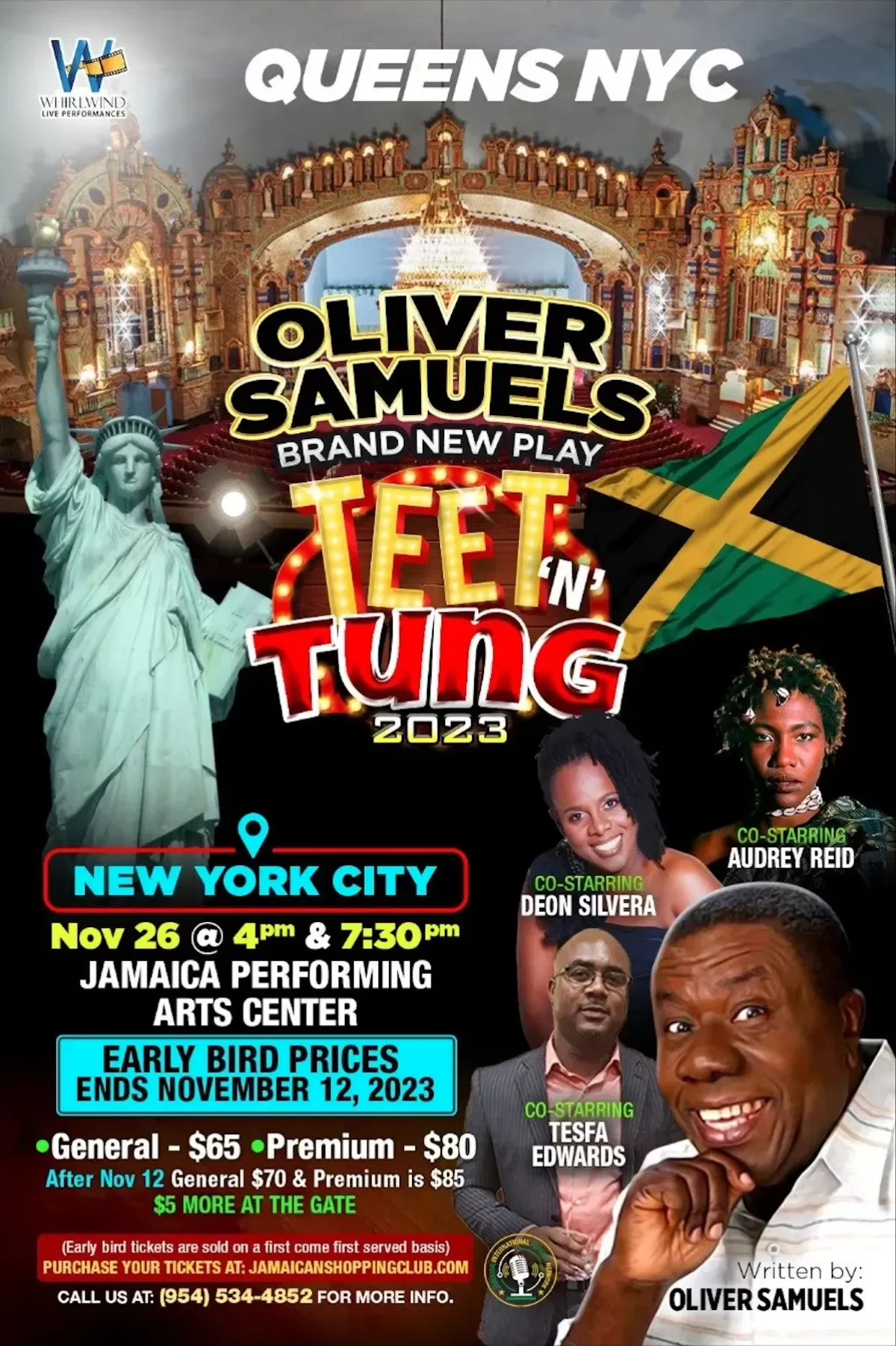 Caribbean King of Comedy Oliver Samuels will bring his play Teet N' Tung to JPAC on November 26th. More info here: https://jamaicanshoppingclub.com/shop/