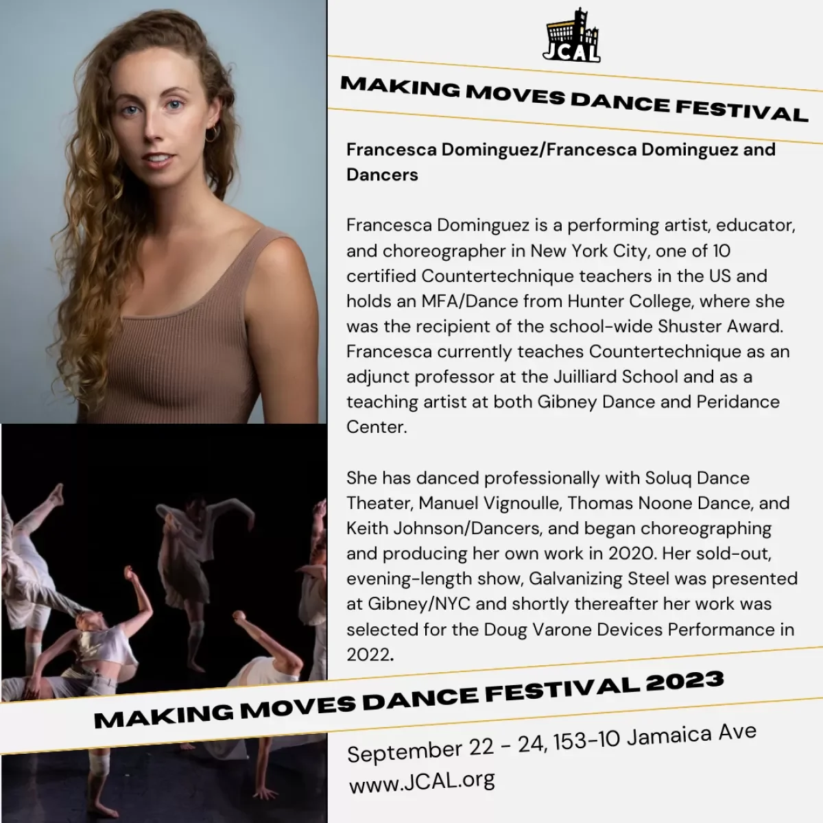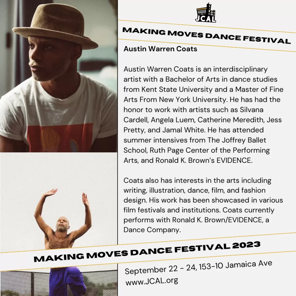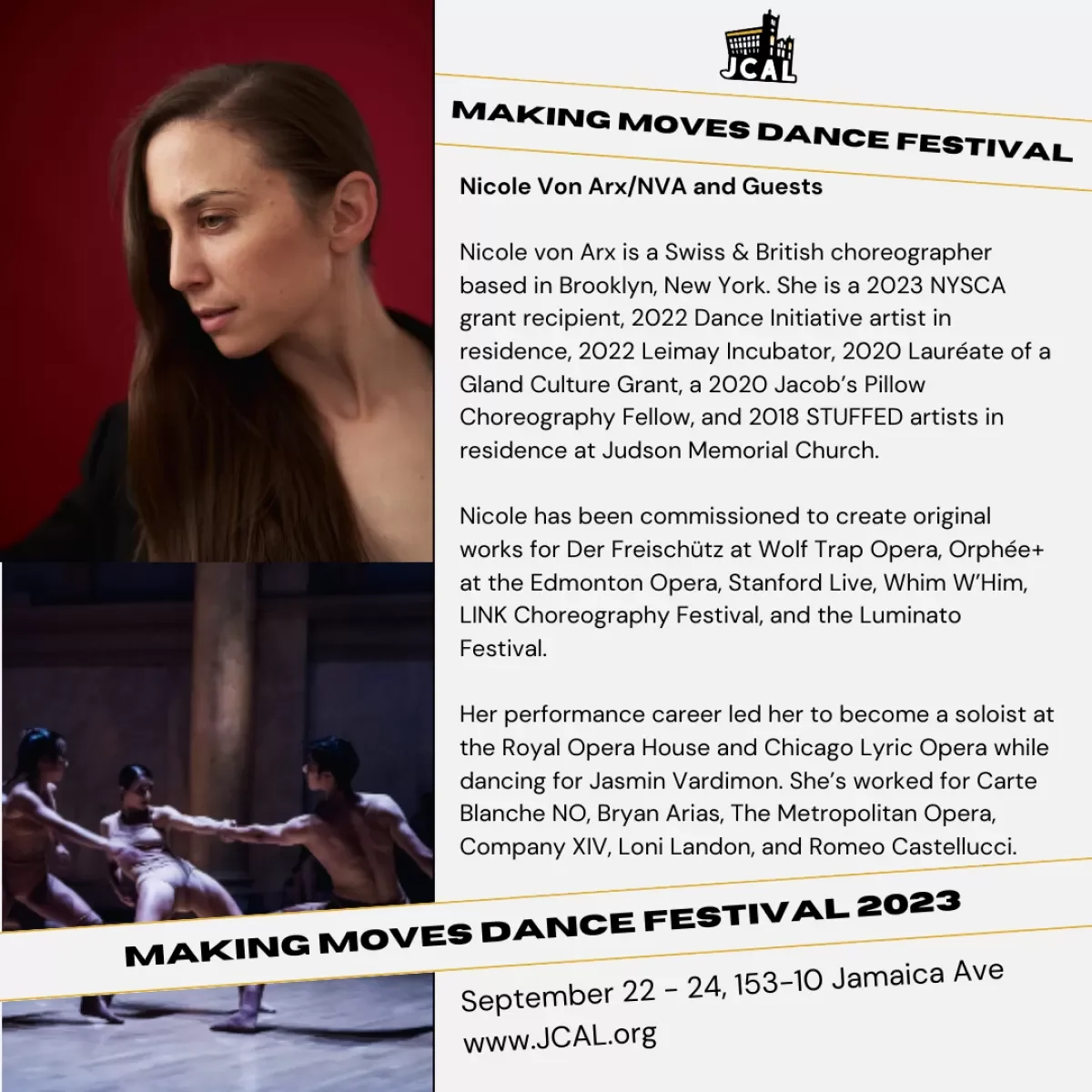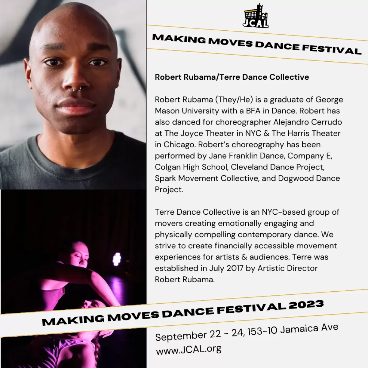 August 1, 2023 (New York) – Jamaica Center for Arts and Learning (JCAL) is pleased to present Making Moves Dance Festival 2023 - To Freedom! The three day event will kick off Friday, September 22nd and end Sunday, September 24th. On each evening, the festivities will begin at 7 pm inside of Jamaica Performing Art Center’s 400 seat theater at 153-10 Jamaica Avenue. Now in it’s 14th year, Making Moves Dance Festival (MMDF) has served as a platform to promote new, emerging, and underrepresented dance companies.
