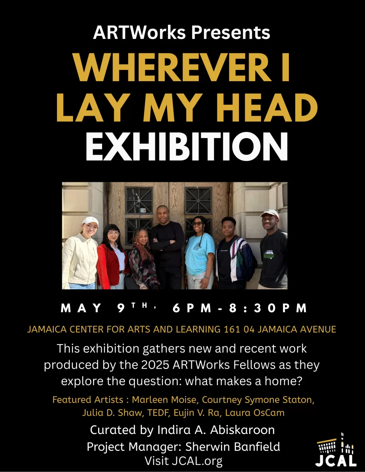 Join us for the highly anticipated opening of Wherever I Lay My Head. The group show is the culminating exhibition for JCAL's ARTWorks Fellows. The exhibition is curated by Indira A. Abiskaroon.